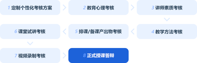 正试授课前能力考核 通过人才考核8大环节并且达标,方可进班授课
